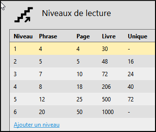 La boîte de dialogue «Configurer l’outil de livre par niveau» s’affiche.