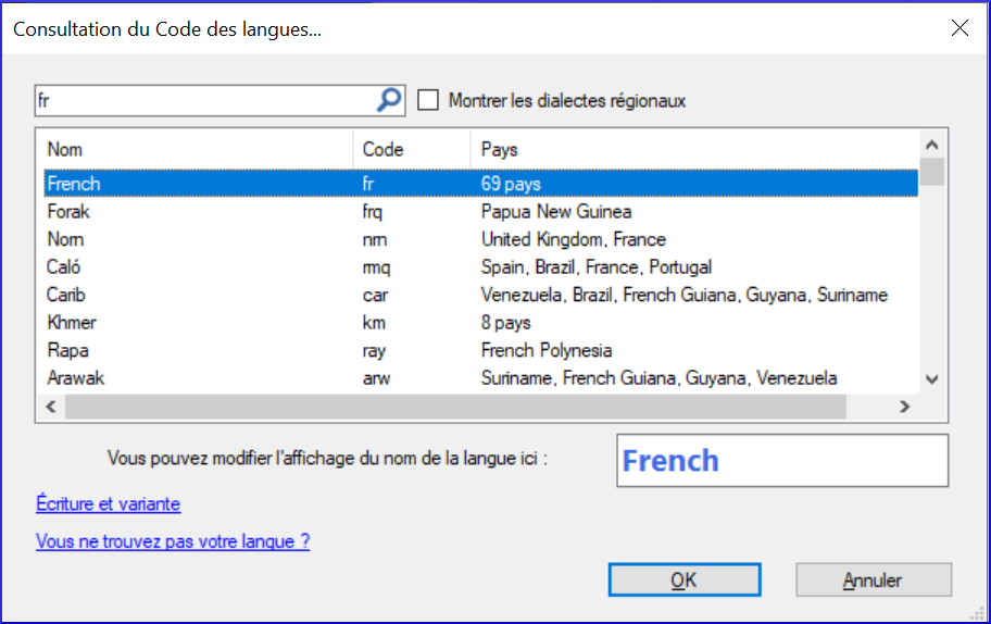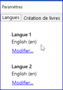 Par défaut, Bloom règle la langue 1 et la langue 2 sur l'anglais. Vous devez changer les langues en français.