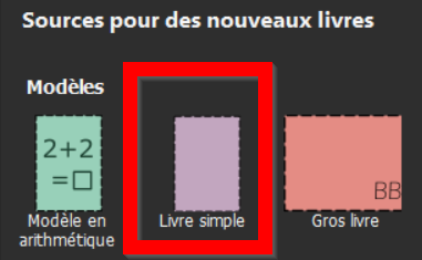 In the main window, under the Collections icon, you have the name of the collection and a list of all the books in that collection. You have several predefined templates in the Sources pane for new books.