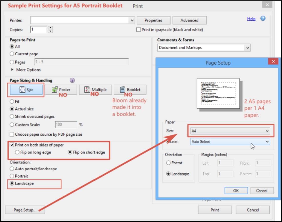 *Follow the instructions. I.e. paper size (not booklet size) in landscape on A4 paper.