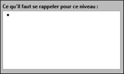 We can put notes to the author in the text box What to remember for this level.