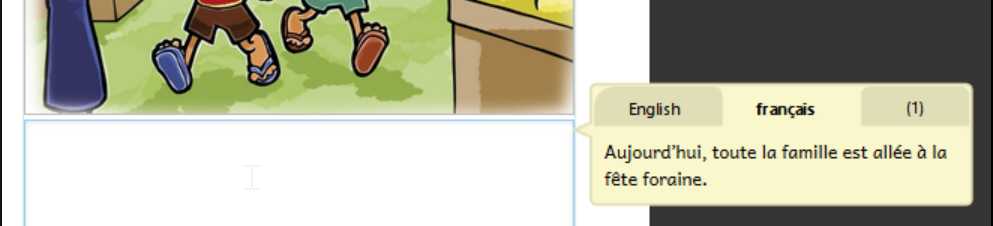 The book is created and each text box shows the text to be translated in a yellow bubble.