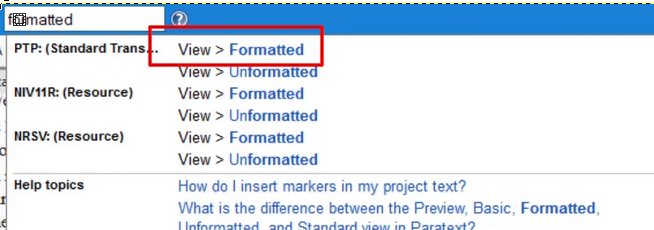 Click on the desired command in results list The menu search works even if you are in standard menus and the command you are searching is normally hidden.