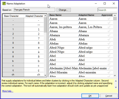 - OR use the Adapt Names tool to enter your transliteration rules for each letter.