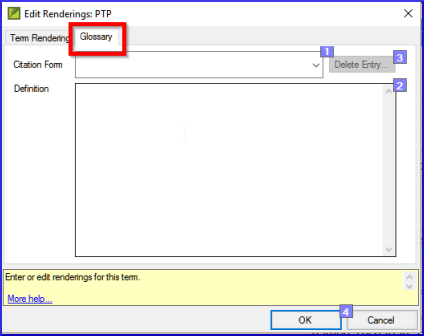 What you are going to do You will use the Biblical terms tool to add a rendering for the term and then use the glossary tab to enter the citation form and the definition.