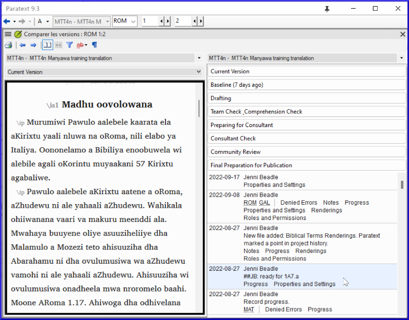 Why is this important? As you work on your translation, you will be continually making changes. It is good to have a copy of your text as it was at a particular point, for example as it was before you went to a consultant check.