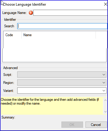 - The advanced form looks like this, where choices you select under Script, Region or Variant add extra letters and numbers to the identifier.