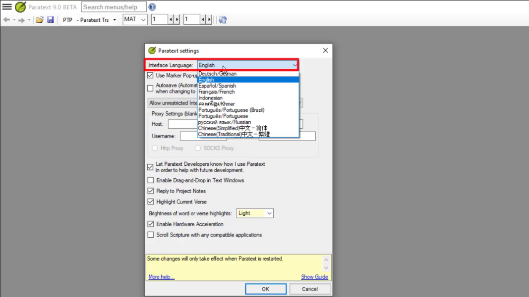 Click Paratext Menu ≡ > under Paratext menu > Paratext Settings >