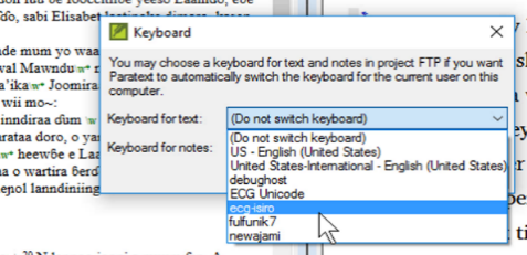 Paratext can be set to turn on a keyboard automatically when the cursor is in a project that needs it.