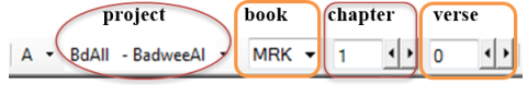 Using the icons on the toolbar, change the project, book, chapter and verse as needed.