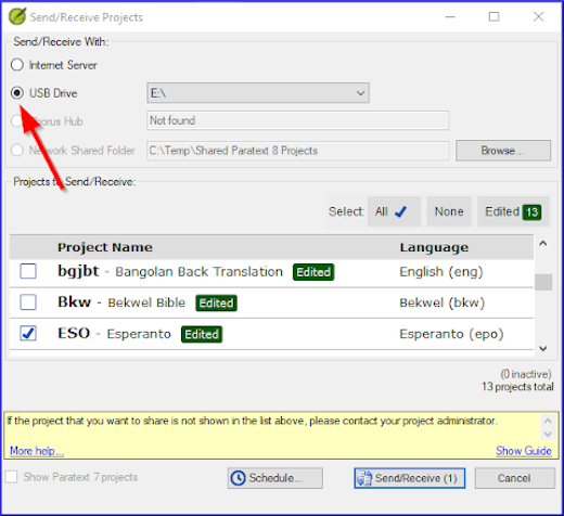 ≡ Paratext, under Paratext > Send/Receive project(s)