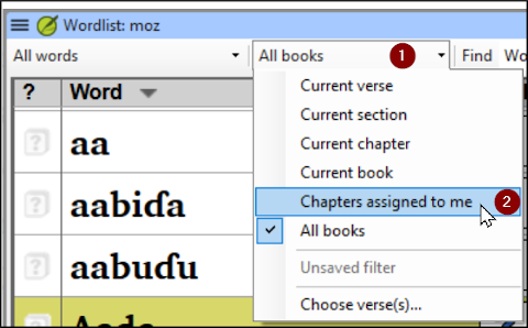 - ≡ Tab, under Biblical terms > Select Biblical terms list