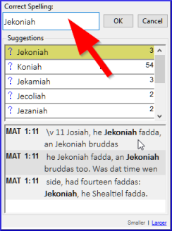 • If the word is incorrect, but Paratext 9 has suggested the correct word, then click the blue link for the correct word.