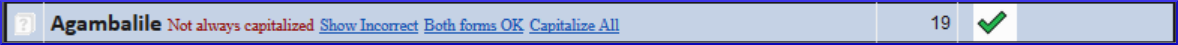 • A list of words is displayed which have capitalised forms but are not always capitalised (that is both forms are used). The list shows the word with a lower case, then the capitalised form below it, which has a blue link to the word