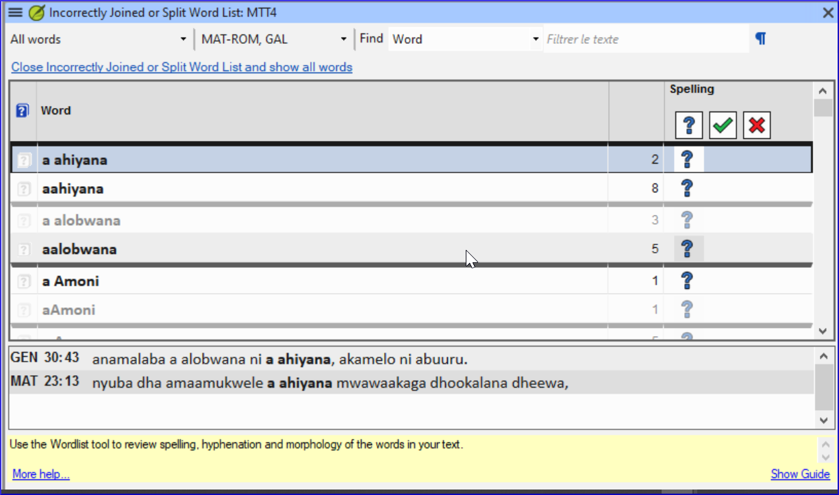 • Work through your wordlist, either correcting mistakes or telling Paratext 9 that the words are correct.