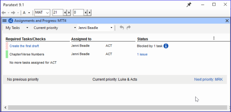 The Assignments and Progress window opens, showing My Tasks in the Current Priority or the last view.