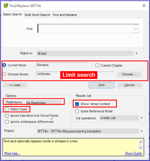 - Instead of showing you a list of matches, Paratext opens the Replace dialog and shows you one match at a time.
